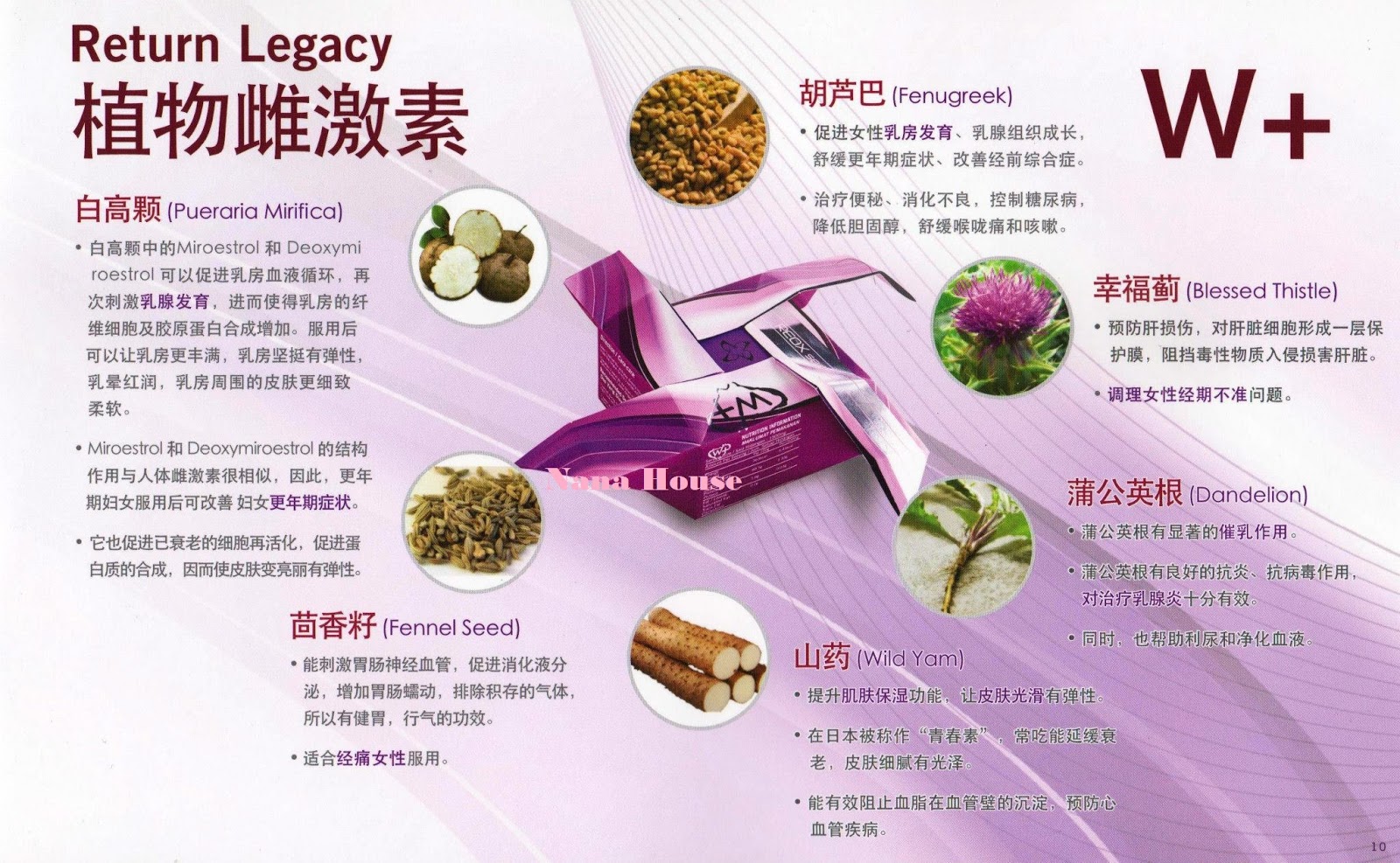 W+ 是一个专为女性研制的恢复青春秘方,结合了多种天然植物